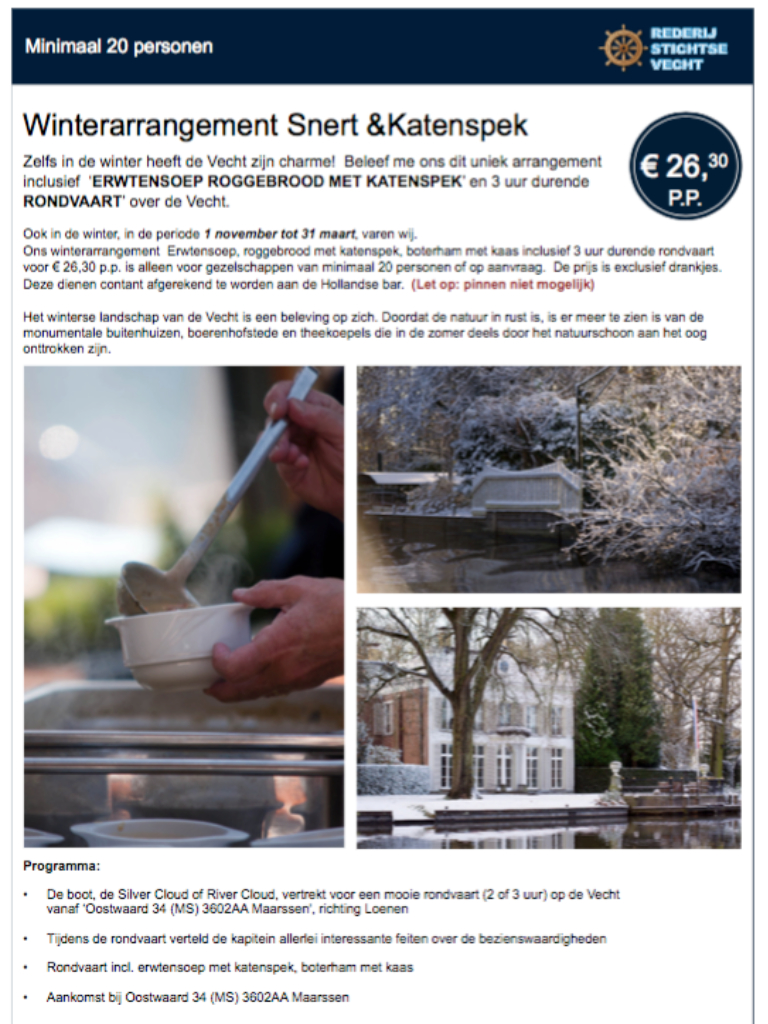 Lees meerZelfs in de herfst en de winter heeft de Vecht zijn charme! Beleef met ons dit unieke stamppotten arrangement.